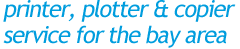 Printer Plotter Pro says it all! Our primary focus is to provide first-class copier and laser printer service throughout the San Francisco Bay Area. We aim to support small businesses. Our motto is as you grow we grow, so we strive to be fast, reasonable and competitive. You can call or fill out the form for a quick quote on service. We usually can get their the next day.